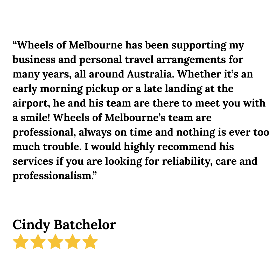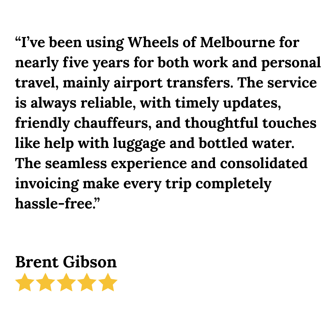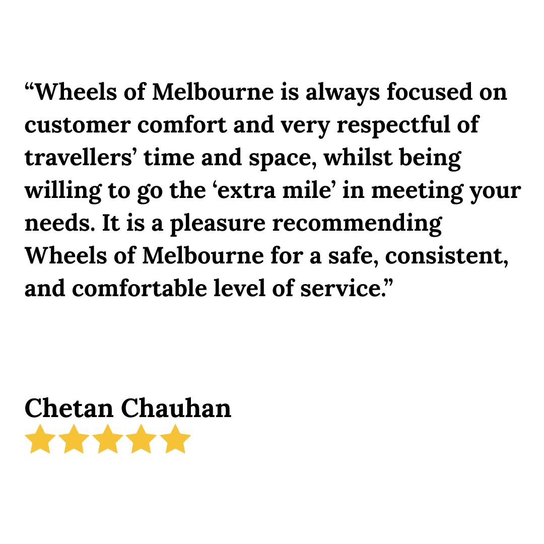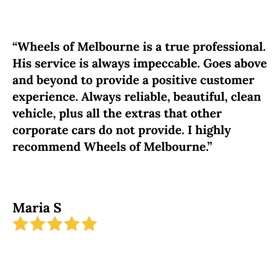 At Wheels of Melbourne, we deliver a refined travel experience designed for comfort, reliability, and class. Whether you’re travelling for business or leisure, we ensure every journey is smooth, punctual, and stress-free.
