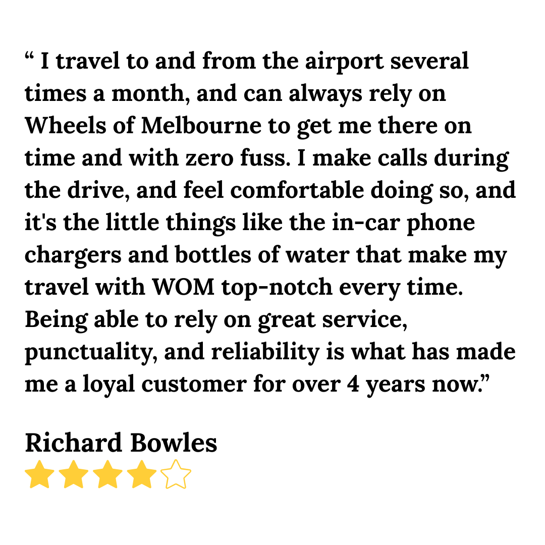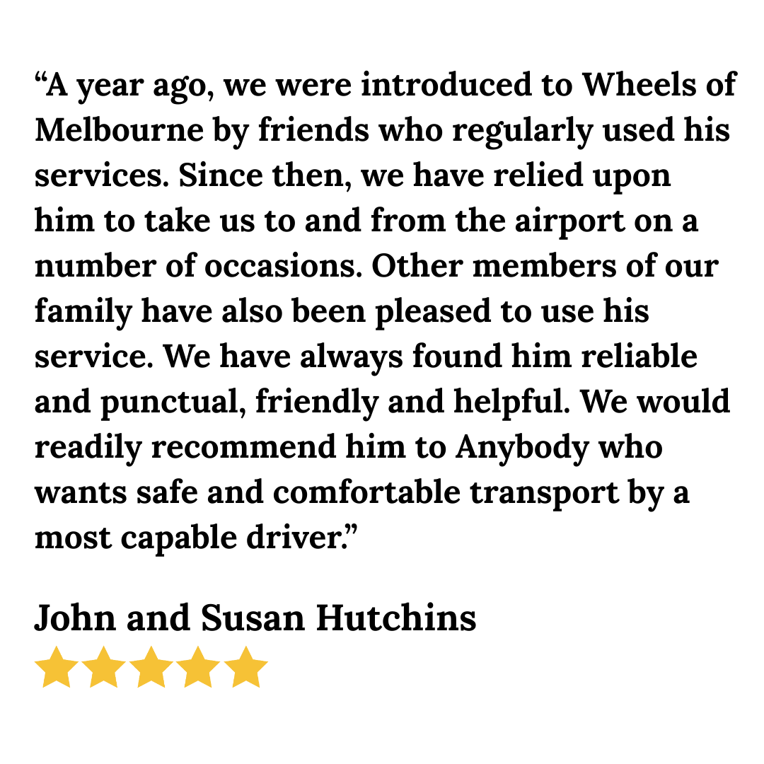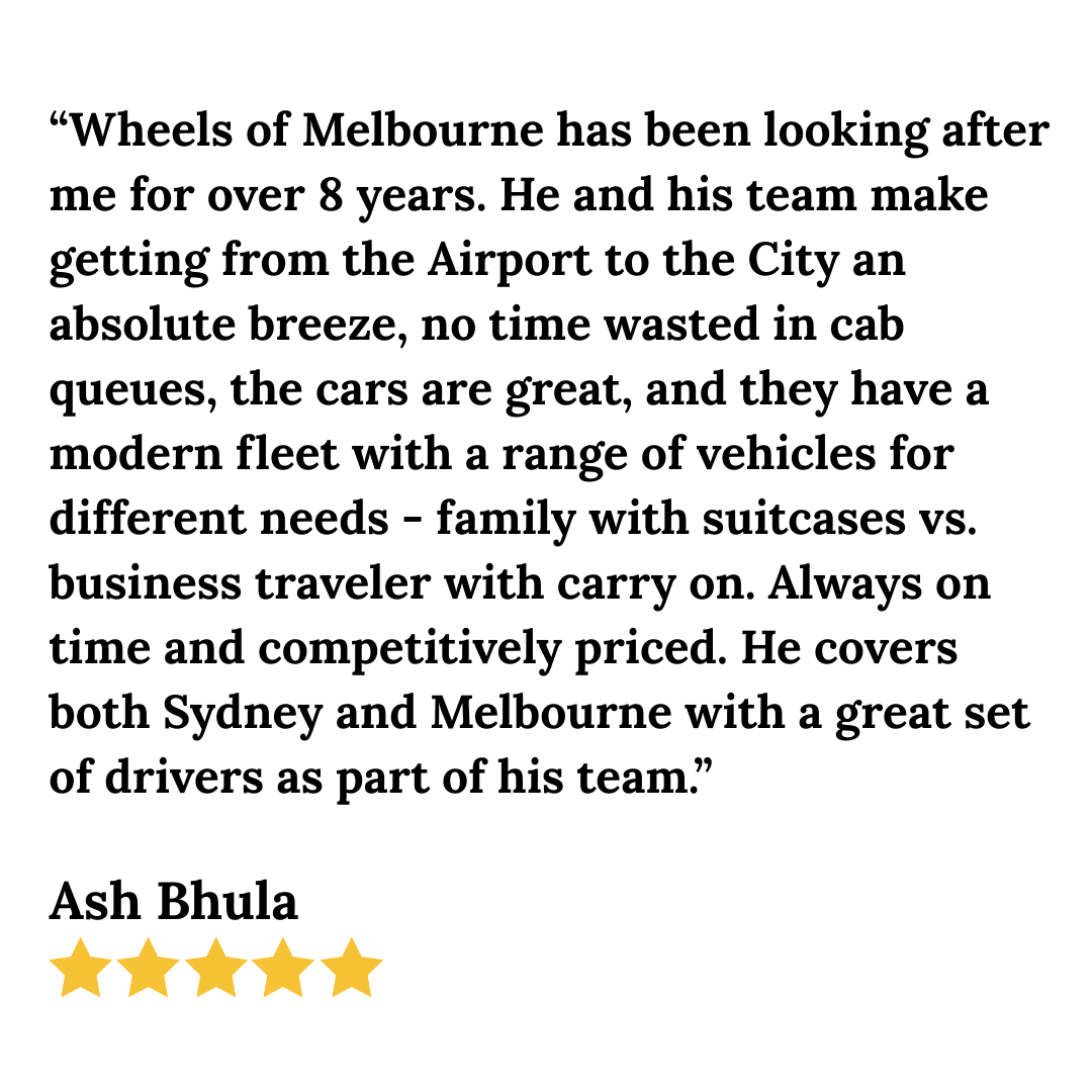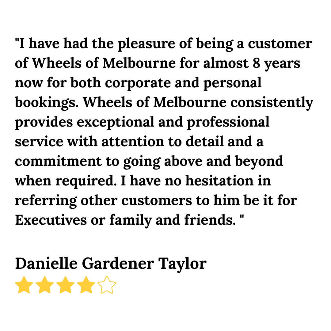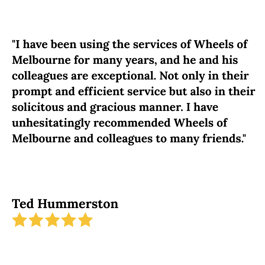 At Wheels of Melbourne, we deliver a refined travel experience designed for comfort, reliability, and class. Whether you’re travelling for business or leisure, we ensure every journey is smooth, punctual, and stress-free.
